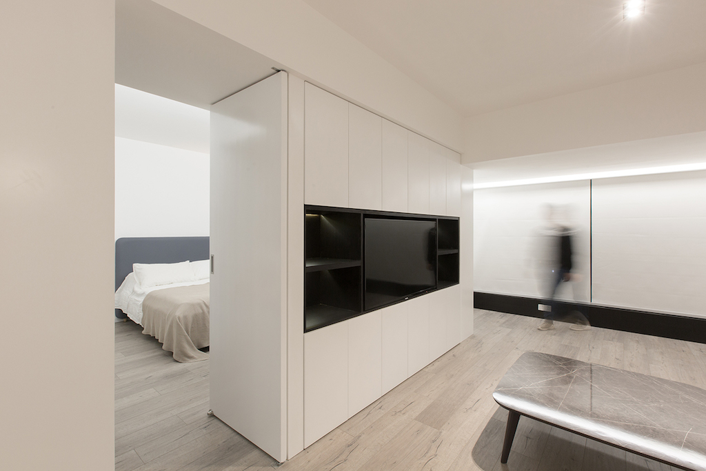 ▲用家具和顶天立地的门来分隔空间,让整个空间更加开放灵活。